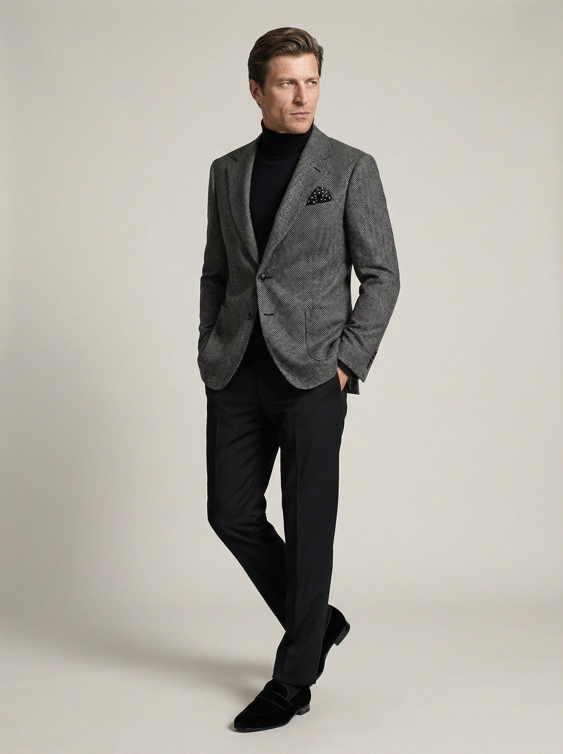 Святковий образ для нього — це не набір правил, а мова настроїв і дрескодів. Від бездоганного black tie до продуманої невимушеності — кожен образ вибудовує власний сценарій вечора, де стиль працює тонко і впевнено.